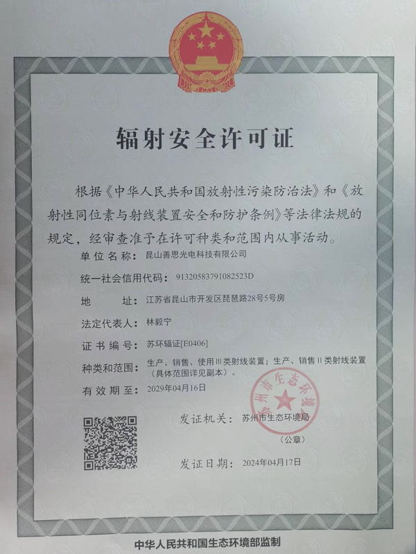 熱烈祝賀善思科技獲批輻射安全許可證!